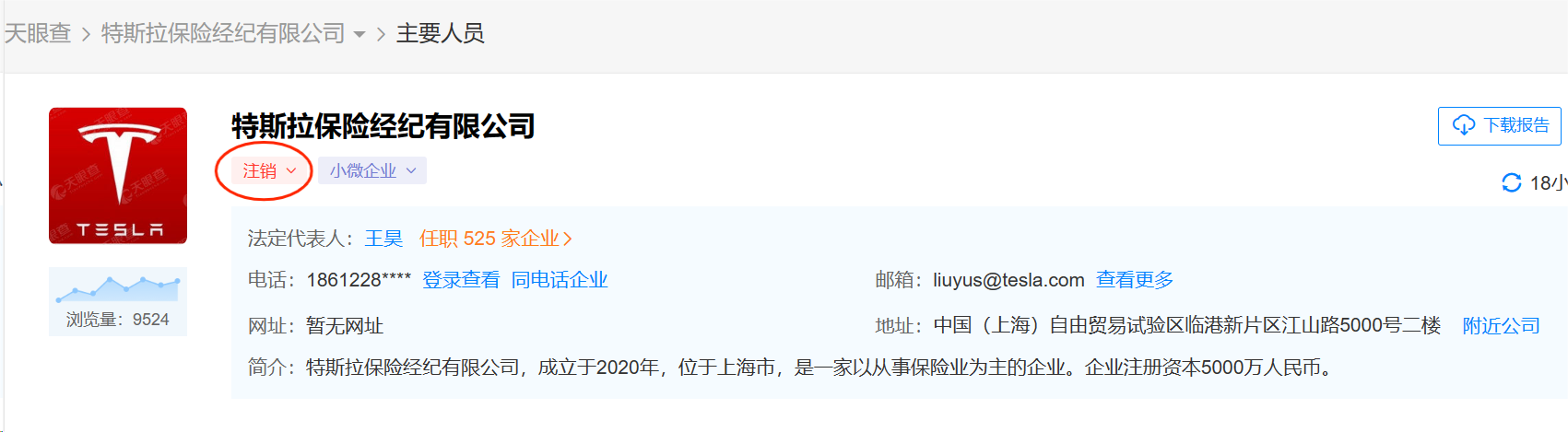 近日,21世纪经济报道记者发现,2020年成立的特斯拉保险经纪有限公司,已于今年4月16日完成注销。对于特斯拉保险经纪有限公司的注销原因,特斯拉相关人士回应记者称,暂无公司层面的说法。不过记者通过公开信息梳理发现,特斯拉保险经纪成立三年多,一直未取得保险经纪牌照。