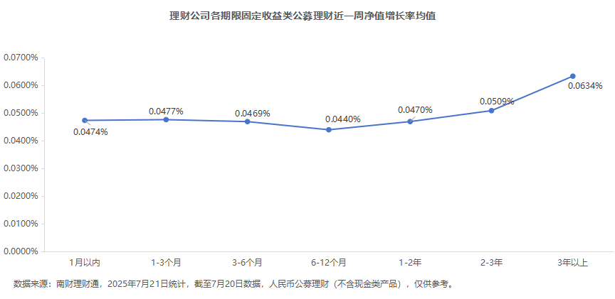破净理财产品数量维持低位。南财理财通数据显示,截至2025年7月20日,理财公司共有24,431只存续公募理财产品,其中104只累计净值低于1,银行理财综合破净率为0.43%。权益类、混合类理财破净率分别为41.46%和5.45%;固定收益类公募理财破净率为0.09%;商品及金融衍生品类理财破净率为0。