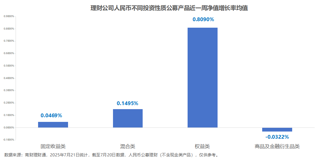 编者按:《机警理财日报》作为南财集团、21世纪经济报道、南财理财通的金牌理财专栏,目前细分了现金、纯固收、固收+期权、固收+权益、混合、权益、衍生品七大类,已实现对银行理财市场的每日追踪。为了进一步反映银行理财行业发展现状,南财理财通课题组增设机警理财周报专题,力求及时准确研判理财行业趋势、洞悉理财产品表现,以期为银行理财行业转型发展带来参考价值。