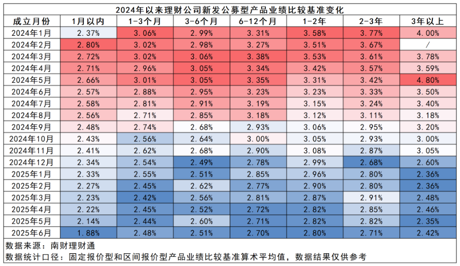 新品定价:业绩比较基准延续下行趋势,1月以内期限产品定价跌破2%