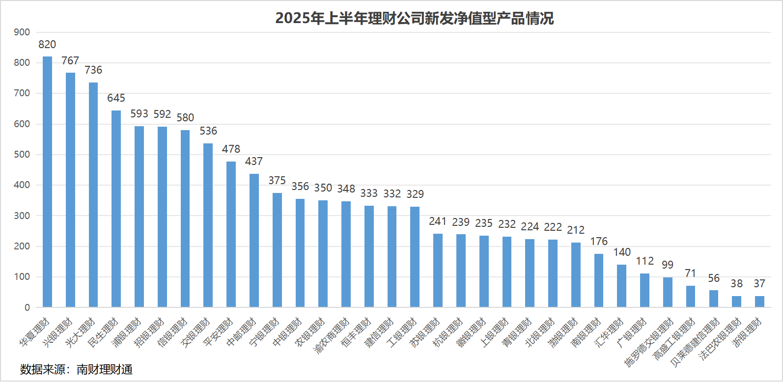据南财理财通数据,2025年上半年,32家理财公司发行了10941只净值型理财产品(以产品登记编码为统计标识),同比2024年上半年的7805只涨超40%。在流动性总体较为充裕的情况下,银行降低存款利率,增加了理财产品的吸引力,导致部分存款资金流向理财领域,银行理财也优化策略提升收益,产品发行量稳步上升,强化规模增长动能。