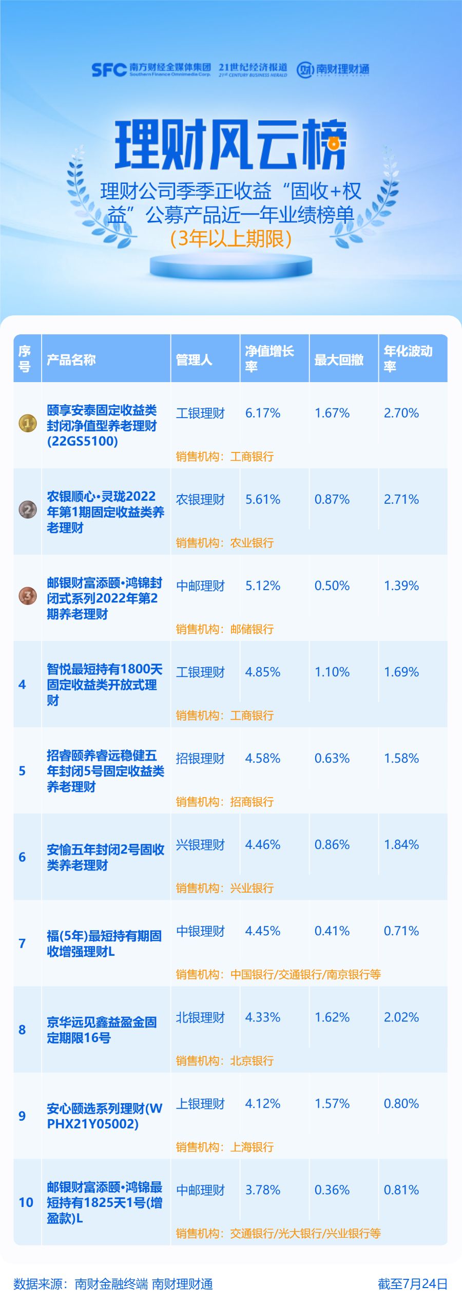 养老理财霸榜“固收+权益”榜单,近1年收益率最高超6%