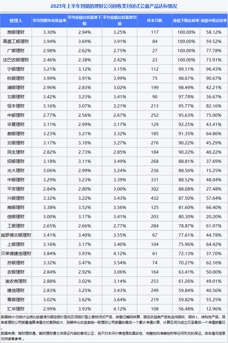 半年以内期限固定收益类理财业绩下限达标率超九成