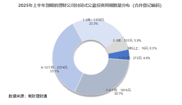 2025年上半年31家理财公司合计有5,905款(按登记编码核算)封闭式公募产品到期,较2024年上半年增长35.44%。其中,固定收益类、混合类、商品及金融衍生品理财分别到期5,759只、145只和1只。