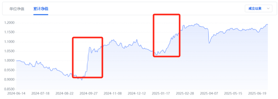 从持有体验来看,该产品成立以来最大回撤仅为3.27%(截至2025年7月30日),结合其上半年末约七成的权益仓位来看,绝对收益策略执行情况较好。资料显示,“阿尔法2号”聚焦“低估值价值投资策略”,坚持低估值(PB)、高盈利潜力(ROE)双维度选股原则,根据市场风险溢价灵活调整股债比例,捕捉戴维斯双击机遇。