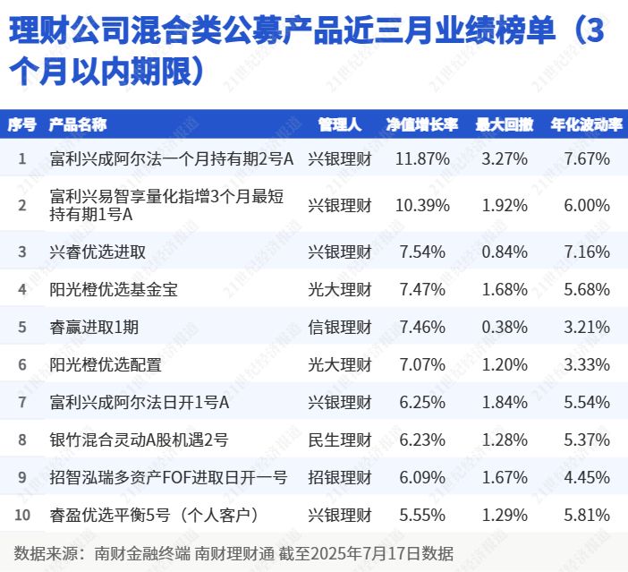 分红的背后,是理财较好的投资收益。据2025年8月6日公告,“富利兴成阿尔法一个月持有期2号”拟进行现金分红,每单位份额分配0.03元。截至7月30日,“阿尔法2号”累计净值涨幅达18.92%。该产品荣获混合类公募产品近三个月业绩第一(7月21日发布的《机警理财日报》,理财公司3个月以内期限混合类公募理财近三月业绩榜单)。此外,该系列的“阿尔法1号”荣获混合类公募产品上半年业绩第一。