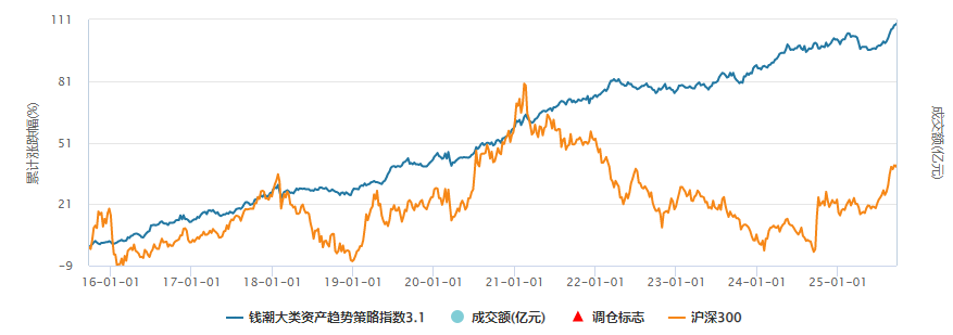 钱潮指数由泰隆银行研发,编制规则通过风险平价和动量策略优选配置全球资产。二季度由于美国关税政策冲击,钱潮指数表现较弱,近期则呈现上涨趋势,据数据,截至9月22日,钱潮指数近3月年化涨幅为6.27%。