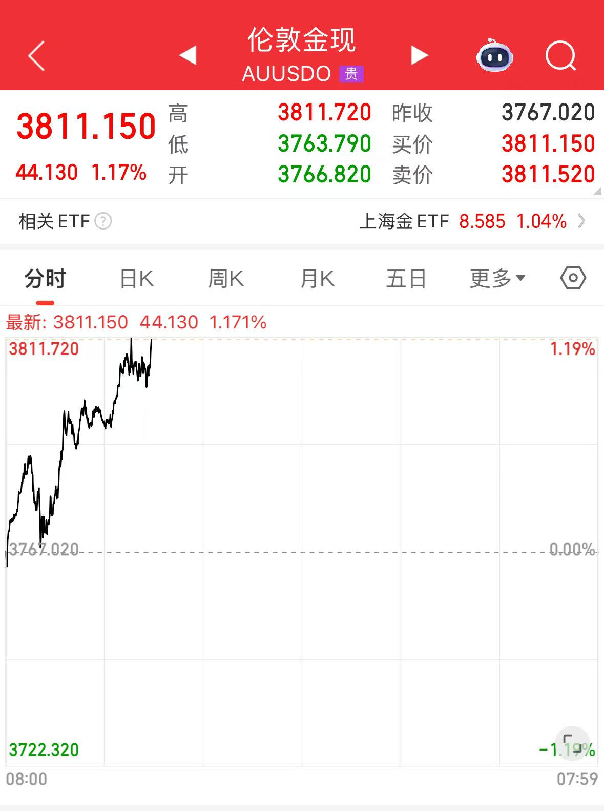 现货黄金突破3800美元!金饰价格悉数站上1100元/克