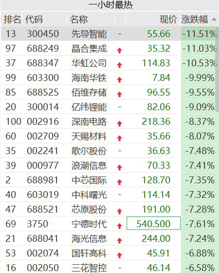 锂电芯片集体杀跌,先导智能、华虹公司跌超10%,金价失守4000美元