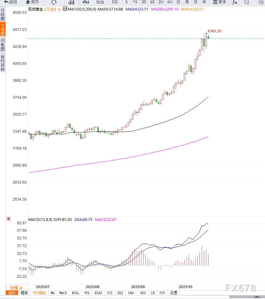 上行方面,若金价突破4380美元,可望延续近期两个月的上涨趋势,进一步挑战4400美元附近心理关口,开启新一轮上行空间。