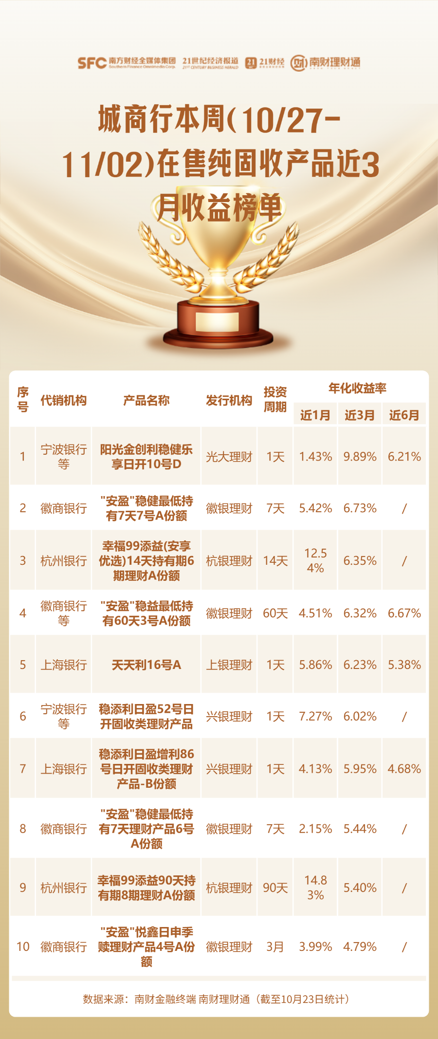 编者按:当前银行理财货架产品琳琅满目,诸如“增强”“稳健”“均衡”等名称相近、特征模糊的产品层出不穷,投资者应如何甄别与选择?为降低投资者的选择成本,南财理财通课题组从代销机构角度入手,每周一聚焦各渠道当周在售的理财产品,搜罗其中业绩表现优异者,并发布代销产品业绩榜单。