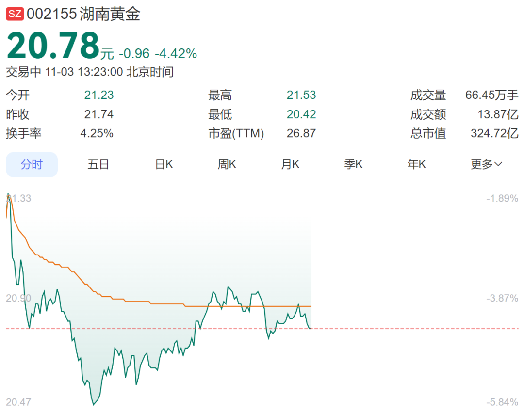 此外,A股方面,贵金属板块领跌。截至发稿,湖南黄金(002155)跌超4%,晓程科技(300139)、山金国际(000975)跌超2%、中金黄金(600489)跌1.94%。