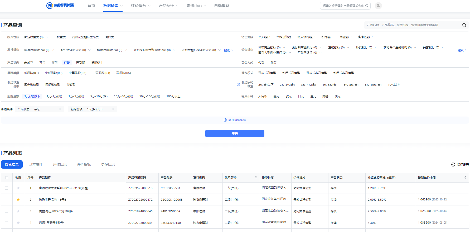 面对市场上众多的理财产品,如何快速找到符合自己需求的那一款?新系统的数据检索模块,提供了超过30+项精细筛选维度,让查询像“多用搜索”一样方便。