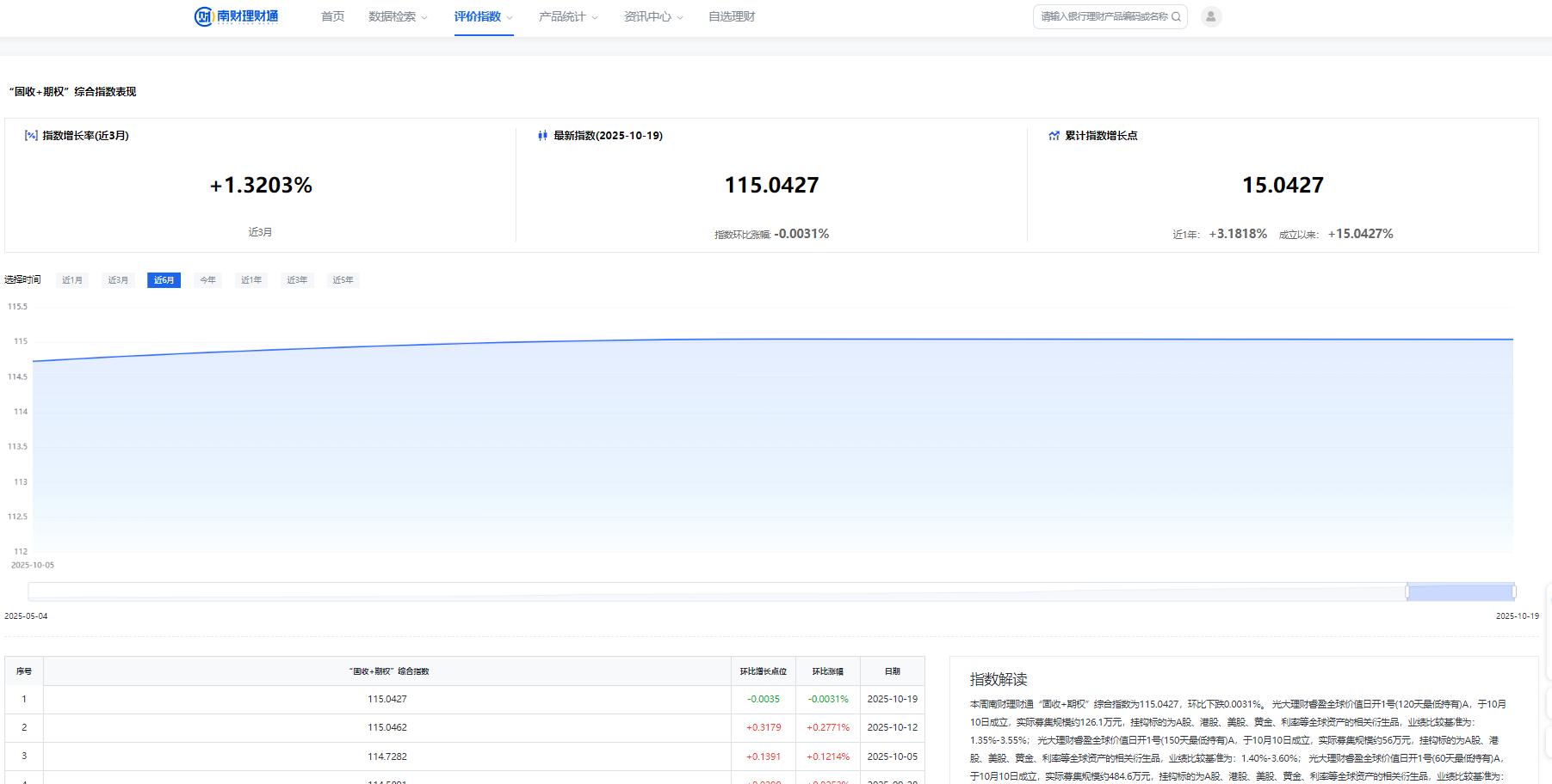 l 固收+期权指数:为您整体追踪“固收+期权”这类策略的表现。它不仅展示指数走势,还揭示了市场主流产品偏爱的挂钩标的,帮助您理解这类产品的整体动向。