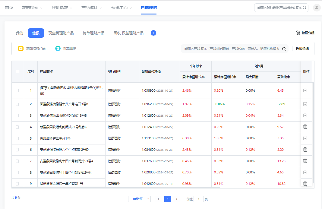 l 自选理财:您可以创建不同的分组(例如“稳健底仓”、“灵活配置”),集中追踪关注产品的净值、收益和关键指标变化,打造您的个人理财看板。