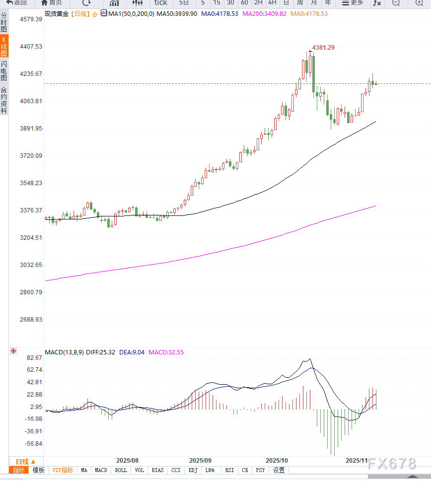 汇通财经APP讯——周五亚洲时段早盘,黄金价格继续维持上行势头,稳定在4180美元附近。随着美国政府重新恢复运行,市场普遍预期被延迟的经济数据将重新公布,并可能反映过去数月的就业结构弱势。