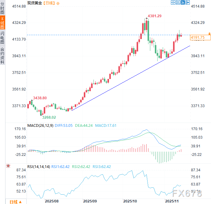 汇通财经APP讯——周五(11月14日)现货黄金小幅上涨约0.23%至4181美元/盎司附近。尽管本周两大看跌因素——美国政府重启与贸易休战,均已消退,黄金却展现出惊人的韧性。