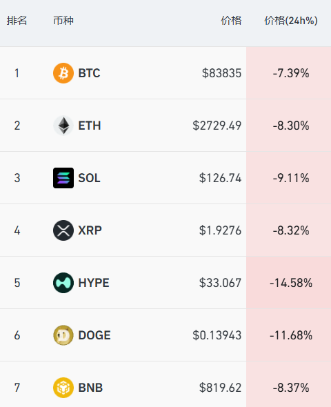 加密货币方面,主要币种集体下挫,比特币从8.06万美元回升至8.3万美元,日内跌幅收窄至7%。过去24小时,全市场超40万人被爆仓。