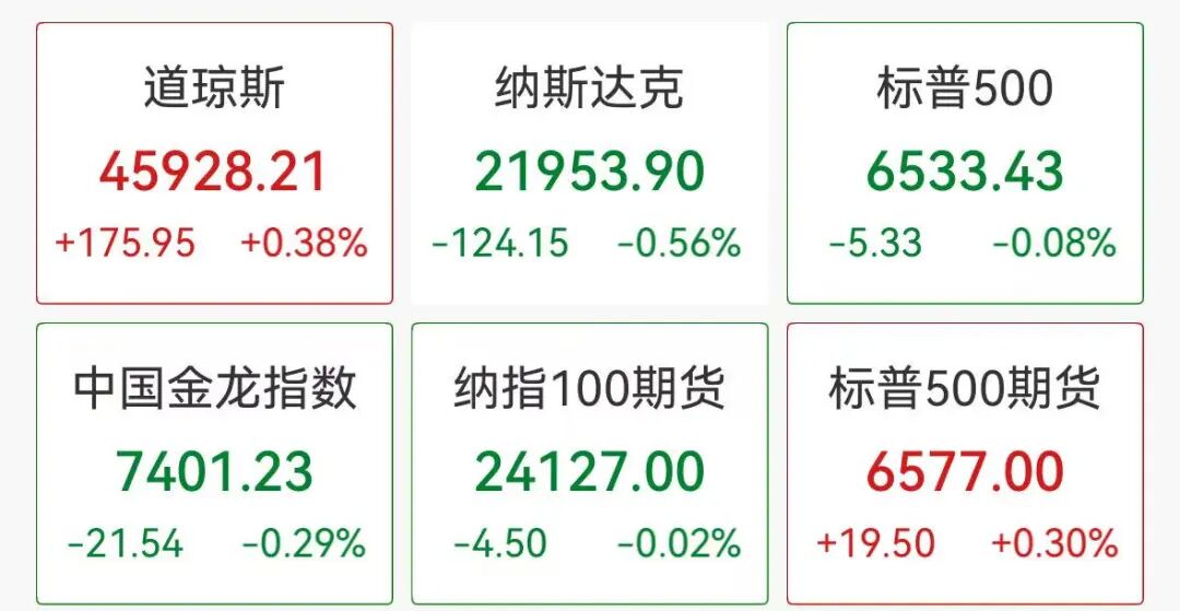 11月21日,美股开盘上涨,截至北京时间23:40,道指涨0.38%,标普500指数转跌0.08%,纳指转跌0.56%。科技股涨跌不一,谷歌涨超2%,英伟达跌超4%,甲骨文跌超7%。费城半导体指数跌近3%,ARM跌超5%,AMD跌超4%。纳斯达克中国金龙指数跌0.29%,唯品会涨超4%,乐信、霸王茶姬涨超3%,小马智行跌超5%,阿里巴巴跌超2%。