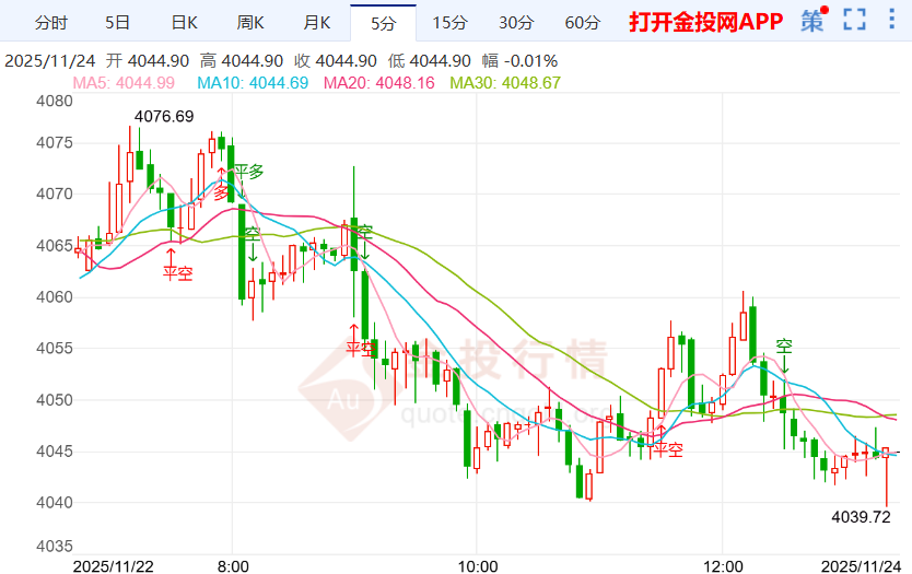 今天(2025年11月24日)黄金价格走势分析
