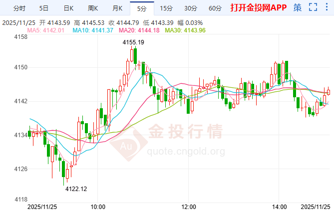 本交易日周二(11月25日)亚洲时段,现货黄金目前交投于4140美元/盎司,日内金价一度升至约一周半高位,因市场对美联储12月降息预期升温,而且对短期内俄乌冲突的预期降温。