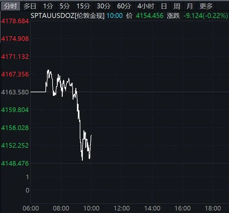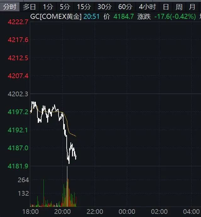 现货黄金一度跌破4150美元/盎司。纽约期金也跌破4185美元/盎司。截至发稿,现货白银跌近1%。