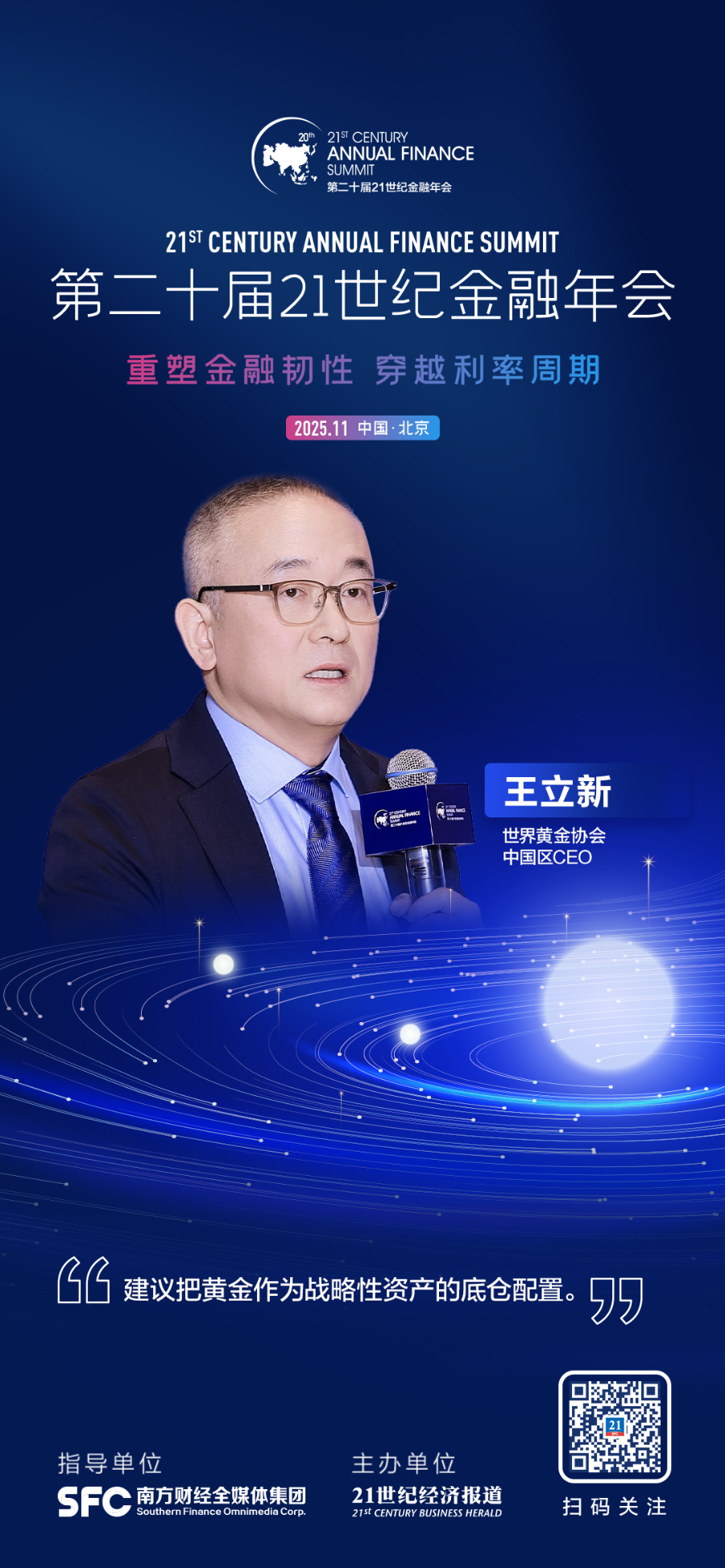 11月22日,为凝聚行业智慧、探寻发展新路径,由南方财经全媒体集团指导、21世纪经济报道主办的“第二十届21世纪金融年会”在北京盛大召开。世界黄金协会中国区CEO王立新就黄金不断刷新历史新高分享了自己的看法。