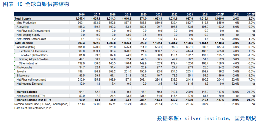 白银供应结构中,矿山产银占据绝对主导,白银回收多年稳定,因此2026年白银供应量难有实质性变化。