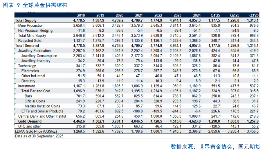 预计2026年矿产金产量将延续平稳增长态势,黄金回收预计也有些许回升空间,因此,2026年全球黄金供应将有望继续增加。