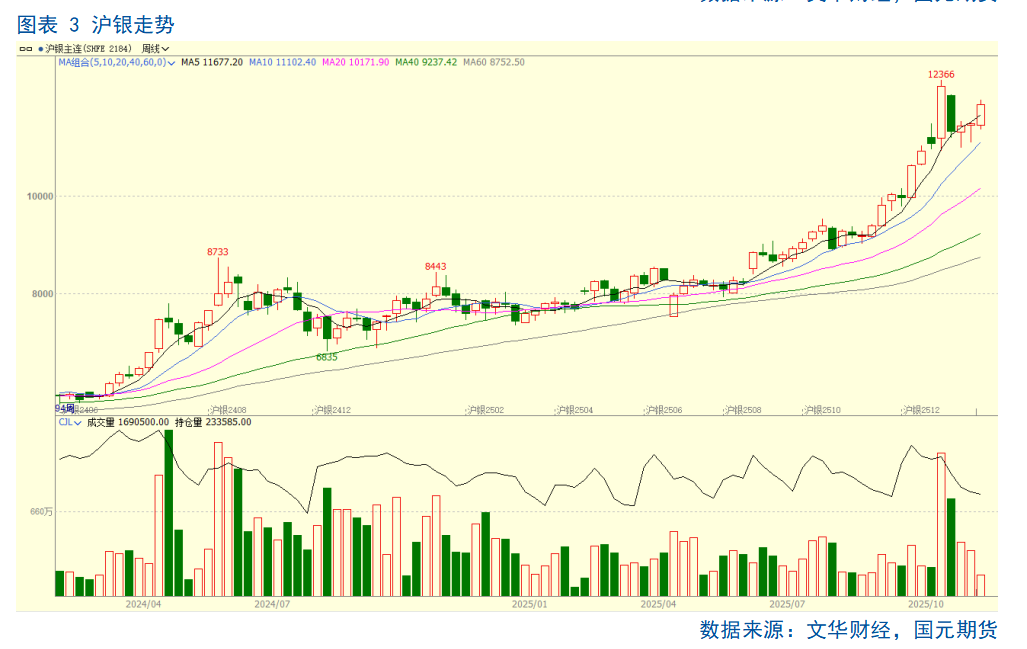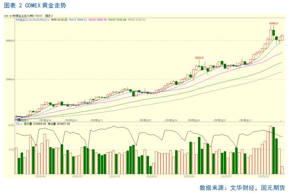 基本面来看,贵金属供应整体平稳,回收金将有望在2026年基于黄金供应端的补充作用。黄金和白银的需求表现将存在较大差异,黄金的珠宝首饰需求仍有一定下降空间,央行的黄金购买仍将继续,但购买数量有望收缩,投资需求仍将旺盛。白银的工业需求在2026年预计稳中有降,实物投资需求有望在2026年扩大。
