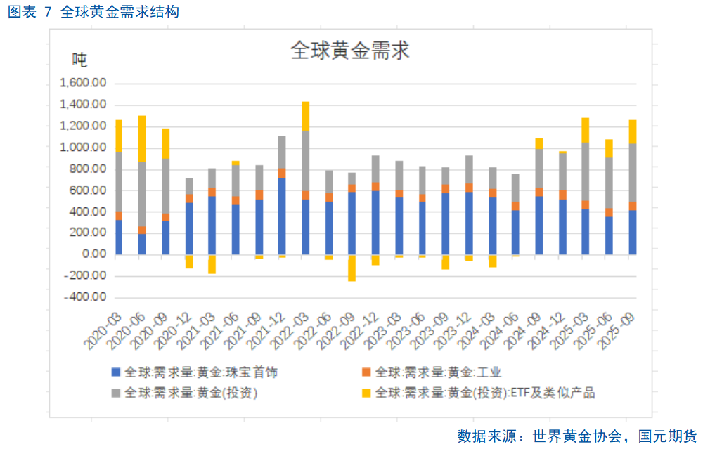 2025年黄金需求量较前两年明显增加,需求结构也发生明显变化。2025年黄金投资需求快速增长,ETF及类似产品的黄金投资持仓也在2025年维持在高水平,工业需求表现平稳,珠宝首饰需求进一步收缩。全球央行在2025年继续增持黄金,但黄金买入量较前两年有所下降,其中,中国、土耳其、哈萨克斯坦等国家保持较快的增持速度。
