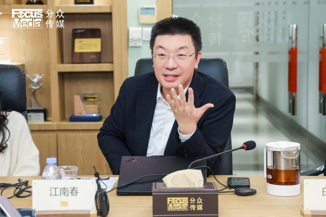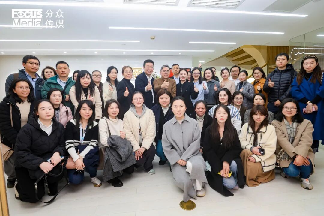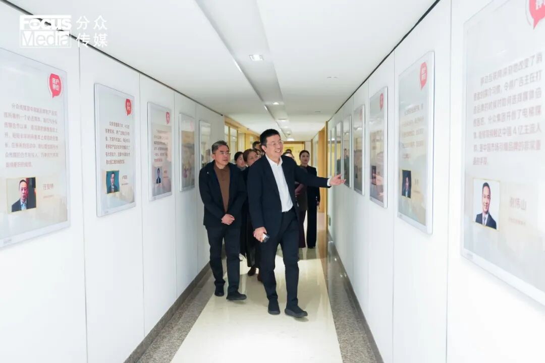 在分众传媒创始人、董事长江南春的引导下,参会人员实地参观了分众传媒总部。自2003年首创电梯媒体广告模式以来,分众传媒已构建起电梯电视、电梯海报、影院媒体核心媒体矩阵,在4亿城市主流人群每天必经的核心生活空间形成高频次、低干扰的强效触达,是数字化时代典型的中心化媒体之一,持续为客户提供更为有效和精准的广告投放。