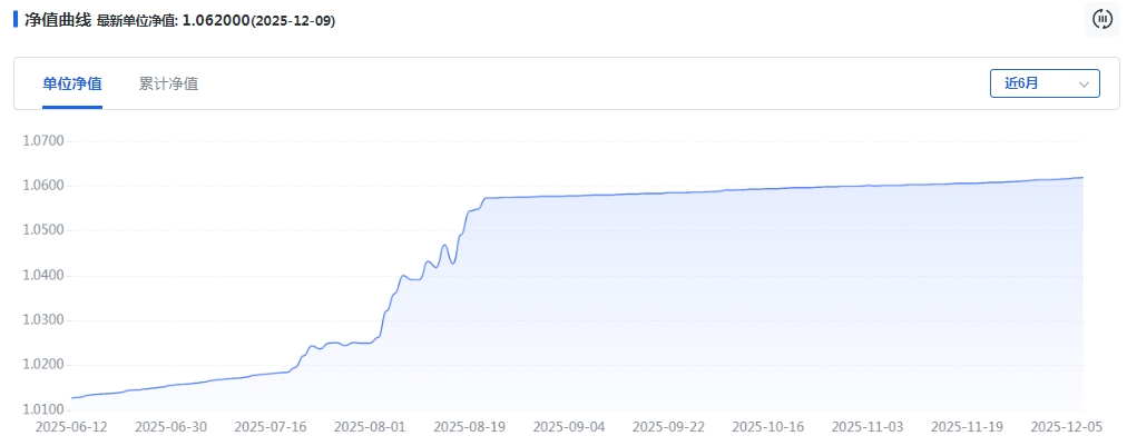 榜首产品华夏理财“固定收益纯债最短持有60天理财产品E款A”近六月平均净值增长率为4.95%。产品自2025年3月成立以来,总体呈平稳上行,仅在7月中旬至8月中旬经历三波净值跃升并伴随较大波动,但总体风险控制较好,最大回撤仅0.41%。不过产品至今尚未有运行报告披露,收益来源尚待观察。