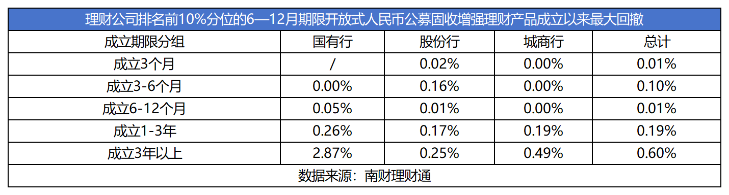 从产品表现看,理财公司排名前10%分位的产品普遍为投资者提供了较好的持有体验,产品在获取超额收益能力的同时有较强的抗跌能力,最大回撤普遍较低。