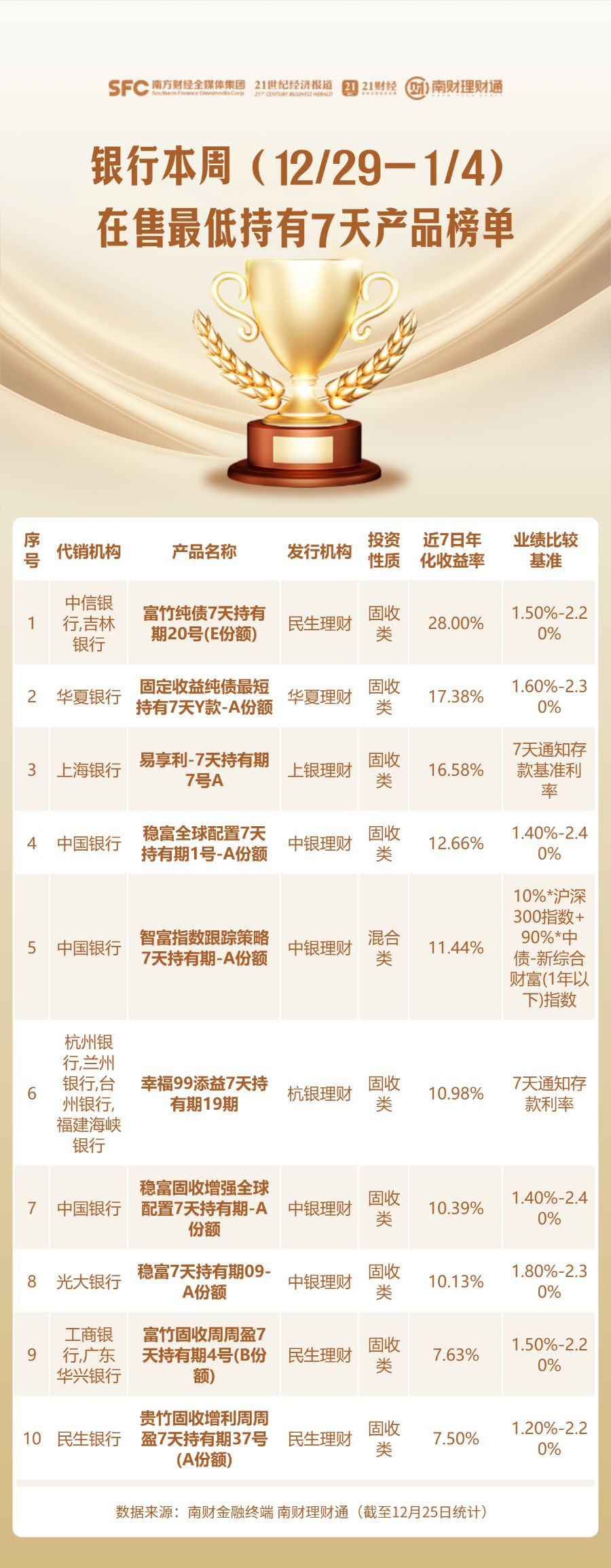 最低持有期理财榜单出炉!股份行代销产品收益居前