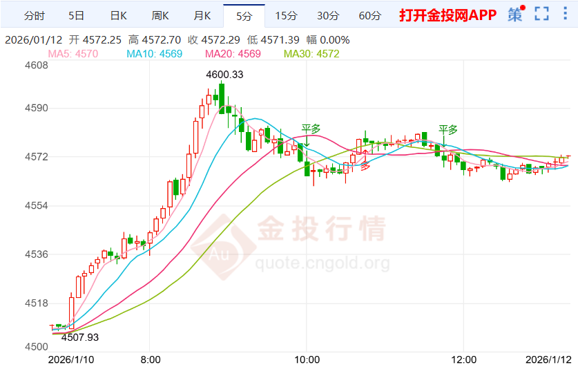 今天(2026年1月12日)黄金价格走势分析