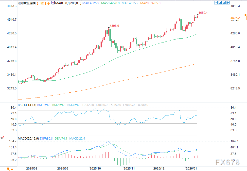 2月黄金期货:多头的下一个上行目标是收盘价突破关键阻力位4750.00美元。空头的近期下行目标是将期货价格推至关键技术支撑位4400.00美元下方。初步阻力位见于隔夜历史高点4647.60美元,随后是4675.00美元;初步支撑位见于今日低点4594.30美元,随后是4550.00美元。