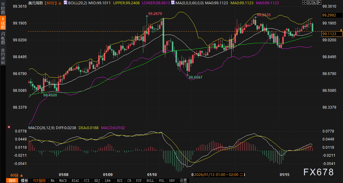 有知名机构大宗商品策略主管指出,上述政策信号“缓解了近期驱动异常大规模金属流入美国的一个关键担忧”。对于美元而言,关税言论的暂缓削弱了其作为“避险货币”的额外需求,但并未根本改变其利率前景。市场普遍预期美联储在本月下旬的会议上将按兵不动,但对今年降息的预期依然存在。因此,美元指数短期走势陷入两难:地缘风险溢价下降构成压力,但与其他主要央行相比,美联储的货币政策路径并未显著转鸽,这又提供了底层支撑。预计未来2-3日,美指大概率在98.96-99.24的区间内维持震荡,盘中需密切关注任何来自白宫或北约方面的、可能改变当前博弈态势的突发言论。