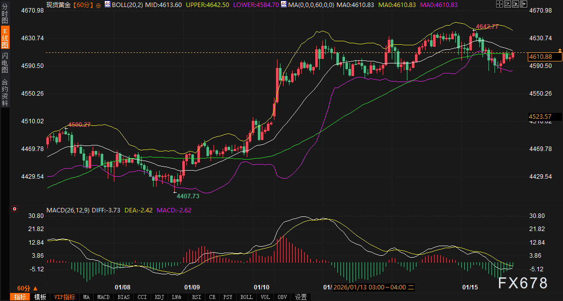 汇通财经APP讯——周四(1月15日),全球金融市场呈现复杂交投格局。美元指数于99.10一线窄幅整理,日内微涨0.04%;10年期美债收益率回升至4.143%,显示避险需求有所缓和;现货黄金则自历史高点回落,现报每盎司4611.17美元,日内下跌0.33%。市场焦点集中于迅速演变的格陵兰地缘政治局势及其对传统避险资产的传导效应,而美国在关键矿物关税及伊朗问题上的表态进一步塑造了短期市场情绪。