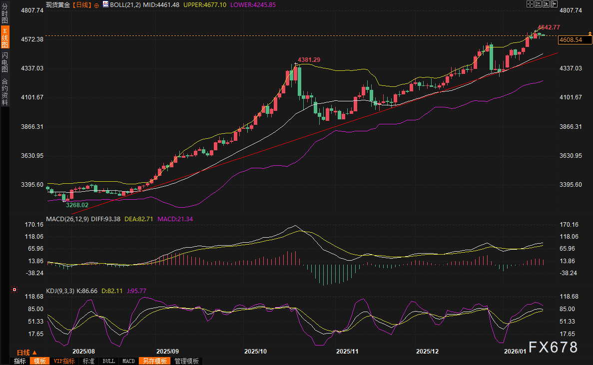 这些变化反映出市场对美联储降息预期的冷却,1月底会议降息概率仅5%。债市收益率的上升通常对黄金不利,因为它提升了持有债券的机会成本,投资者更倾向于转向固定收益资产。