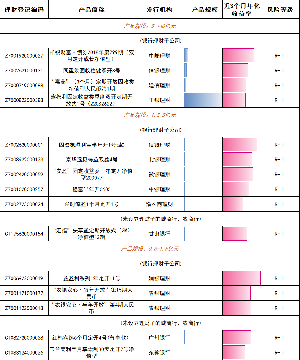 (注:榜单中彩色条形长度代表数值大小,同组数值越大,条形长度越长。R-Ⅰ、R-Ⅱ、R-Ⅲ、R-Ⅳ、R-Ⅴ分别代表产品风险等级一级(低)、二级(中低)、三级(中)、四级(中高)、五级(高)。)
