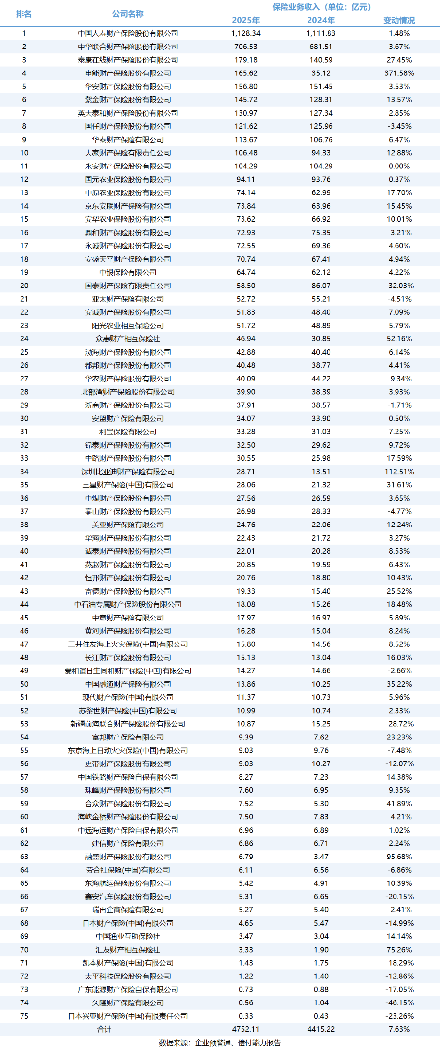 随着2025年第四季度偿付能力报告陆续披露,非上市财产险公司的全年经营图谱逐渐清晰。