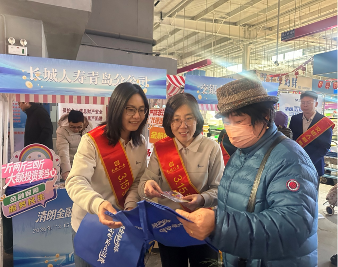 为深入落实“青岛金融守护站”全城行动部署,切实提升重点人群金融素养,2026年3月7日至15日,长城人寿青岛分公司积极响应监管号召,参与全市“菜场金融守护站”主题宣教活动,组织“金帆护航”金融消保志愿服务队,走进市北区鞍山二路农贸市场,将金融知识送到百姓身边,助力打造“银发早市消保课,金融知识‘蔬’适圈”。