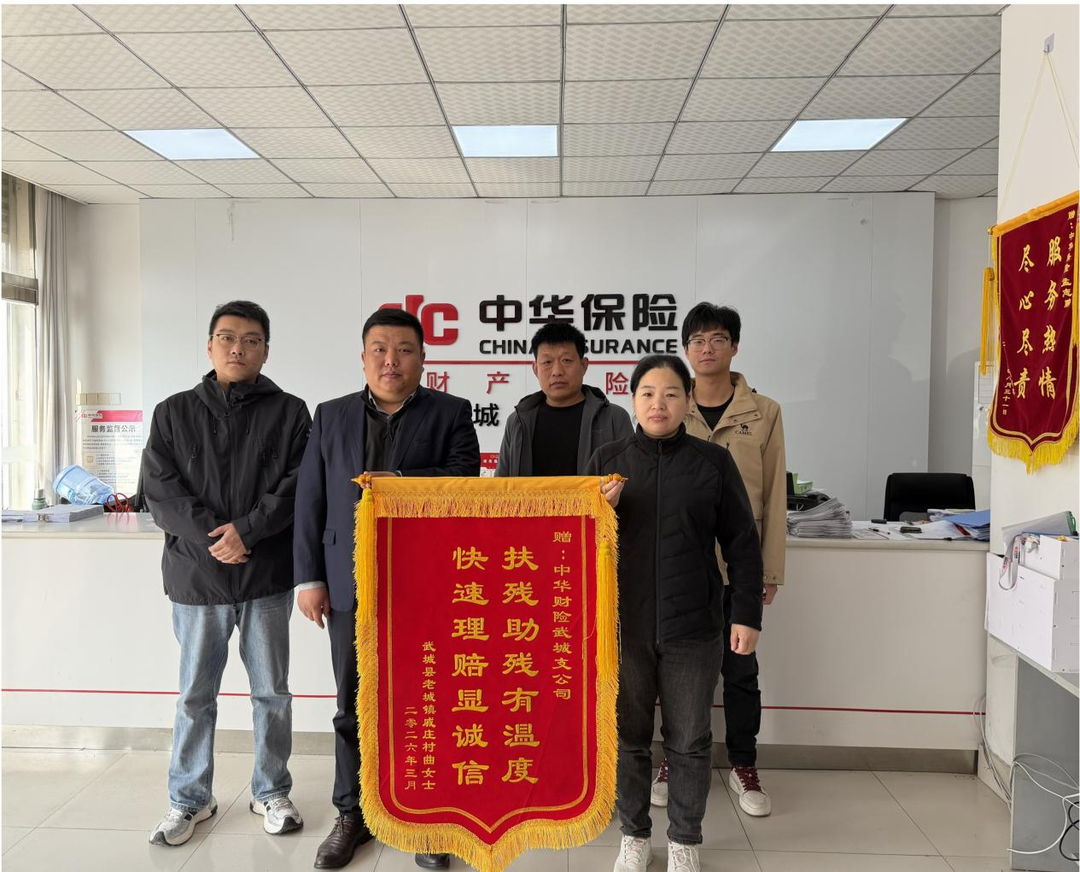 此次获赠锦旗,不仅是对中华财险德州中支理赔速度与服务温度的高度认可,更是对公司践行社会责任、深耕普惠金融的生动见证。近年来,中华财险德州中支始终将“为群众办实事”作为工作的出发点和落脚点,特别是在关爱残疾人、老年人等特殊群体上,坚持做有温度的保险。未来,中华财险德州中支将继续深化“以客户为中心”的服务理念,聚焦残疾人等特殊群体的保障需求,不断提升理赔服务的便捷性与获得感,通过暖心的服务,切实发挥保险作为社会稳定器的作用,为民生福祉保驾护航。