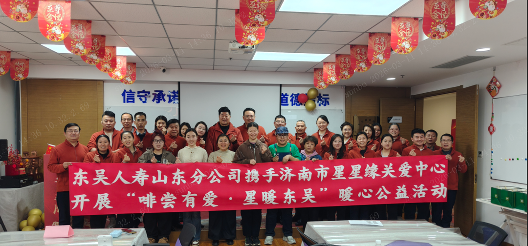 值得关注的是,2026年3月10日,东吴人寿山东分公司职场内举办了一场暖心满满的公益活动——携手济南市星星缘心智障碍者关爱中心,开展“啡尝有爱.星暖东吴”爱心公益行动。活动现场,公司员工与“来自星星的孩子”一同动手制作咖啡,在互动交流中分享制作心得,用陪伴与倾听拉近彼此距离。这场公益活动不仅为特殊群体送去温暖与关怀,更展现了公司践行社会责任、传递爱心正能量的初心,实现了金融消保与公益慈善的深度融合。