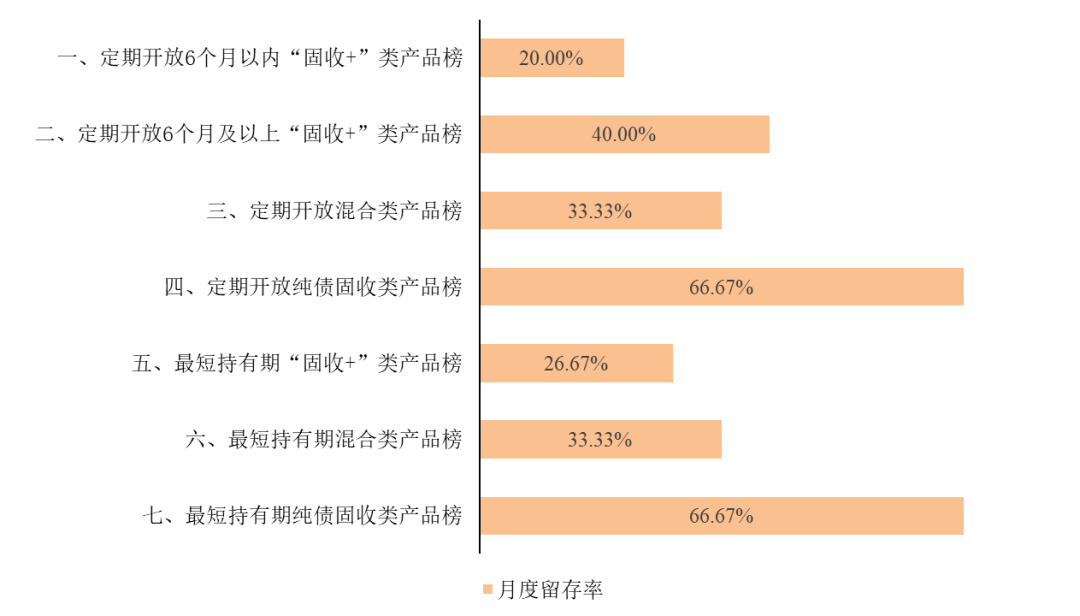从榜单产品留存率来看,2月各类上榜产品的留存率均显著提升,共有17家机构旗下43只产品连续上榜,全月整体产品留存率为40.95%,较1月上升15.24个百分点。