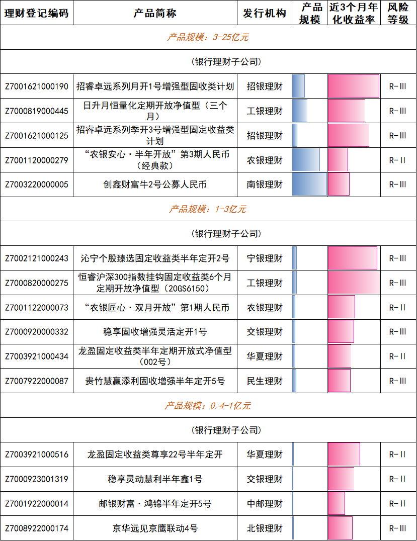 由于部分理财产品未完整披露到期报告或净值数据,榜单统计数据可能有疏漏之处,如需更新确认数据,请联系我们。本榜单仅作评价结果展示,如需获取详细评价方法和评价数据、完整版月度报告也请联系我们。联系工作邮箱:goldenbull@cuhk.edu.cn。